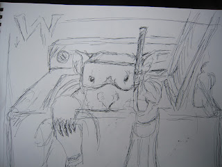 Here is the concept sketch. Ordinarily I don't draw out a carving first, preferring to discover it as I go along. Most clients, however, have this odd liking for what is quaintly called "having some idea what the hell we're spending the money on"